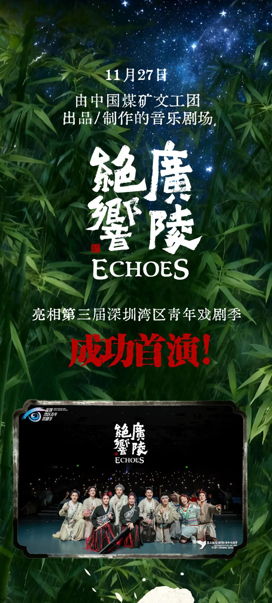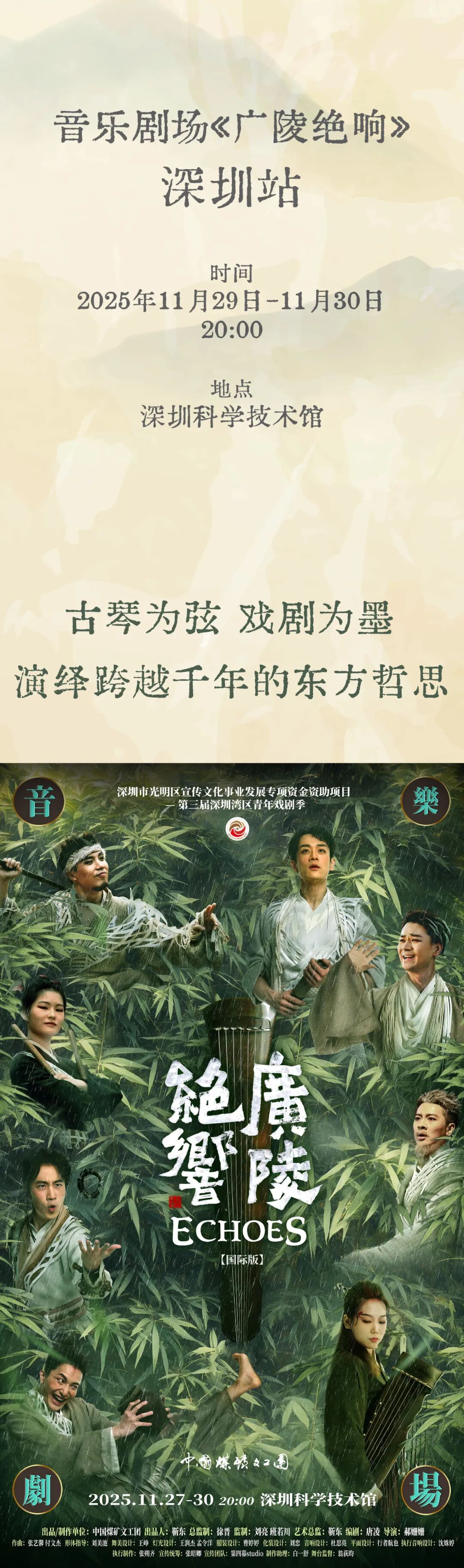 音樂劇場《廣陵絕響》亮相第三屆深圳灣區青年戲劇季!