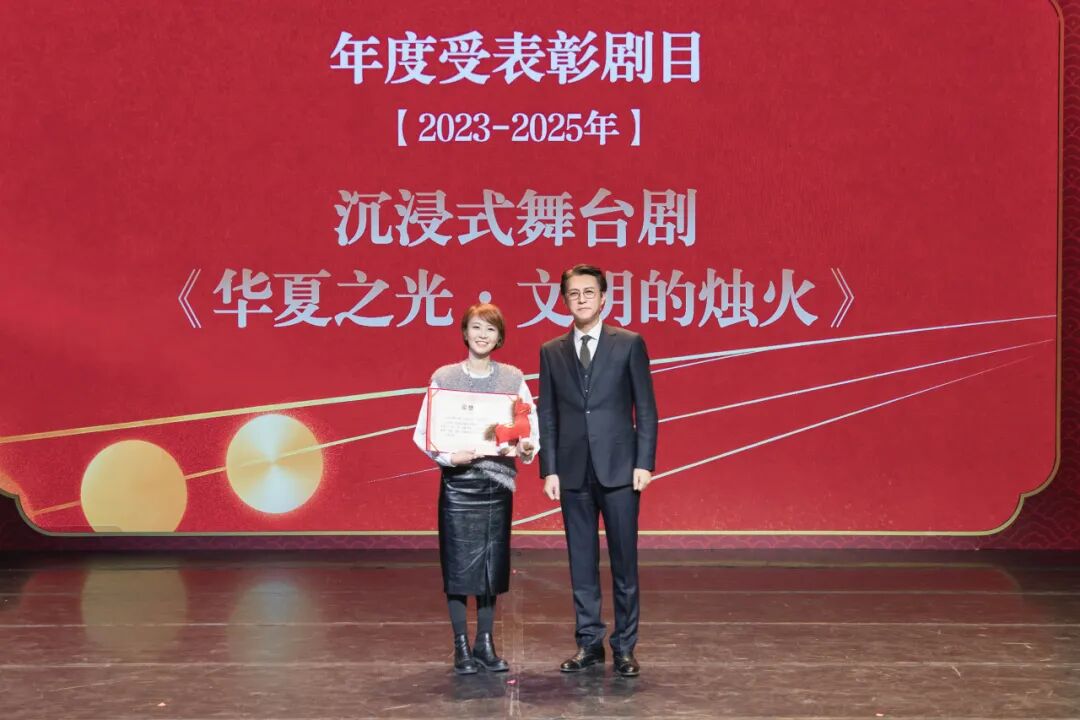 大會表彰了劉敏濤等14位同志以及話劇《溫暖的味道》、沉浸式舞臺劇《華夏之光·文明的燭火》兩個劇組。