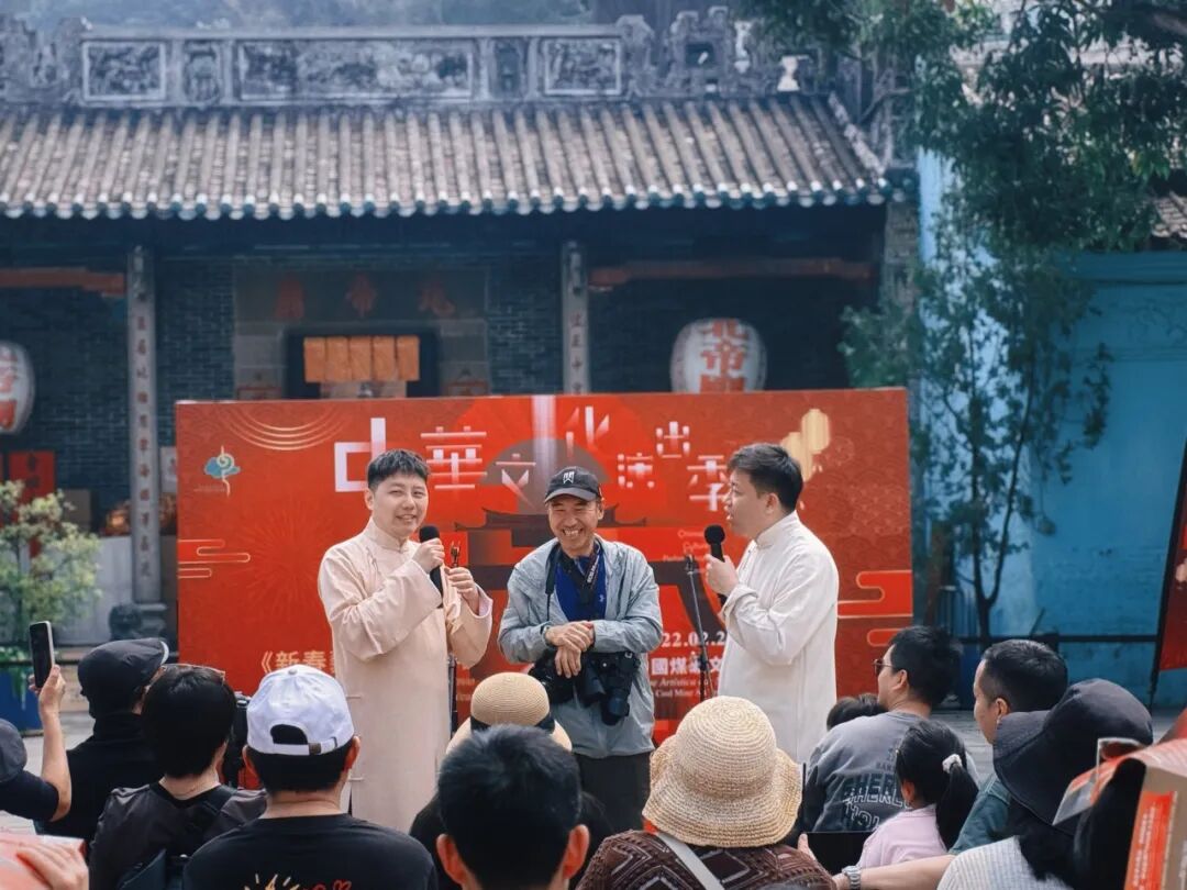 連續兩天的社區演出人氣高漲、暖意十足,掌聲與歡呼聲不斷。演出以節奏明快的快板開篇,隨后相聲、雙簧輪番登場,憑借精湛功底和趣味表達帶動現場氛圍,引發觀眾積極互動。非遺技藝展演成為亮點,空竹雜技的靈動精巧、川劇變臉的神秘奇妙、古彩戲法的精妙絕倫,充分展現中華傳統技藝的魅力。整場節目雅俗共賞,讓觀眾深切感受傳統藝術的深厚底蘊。