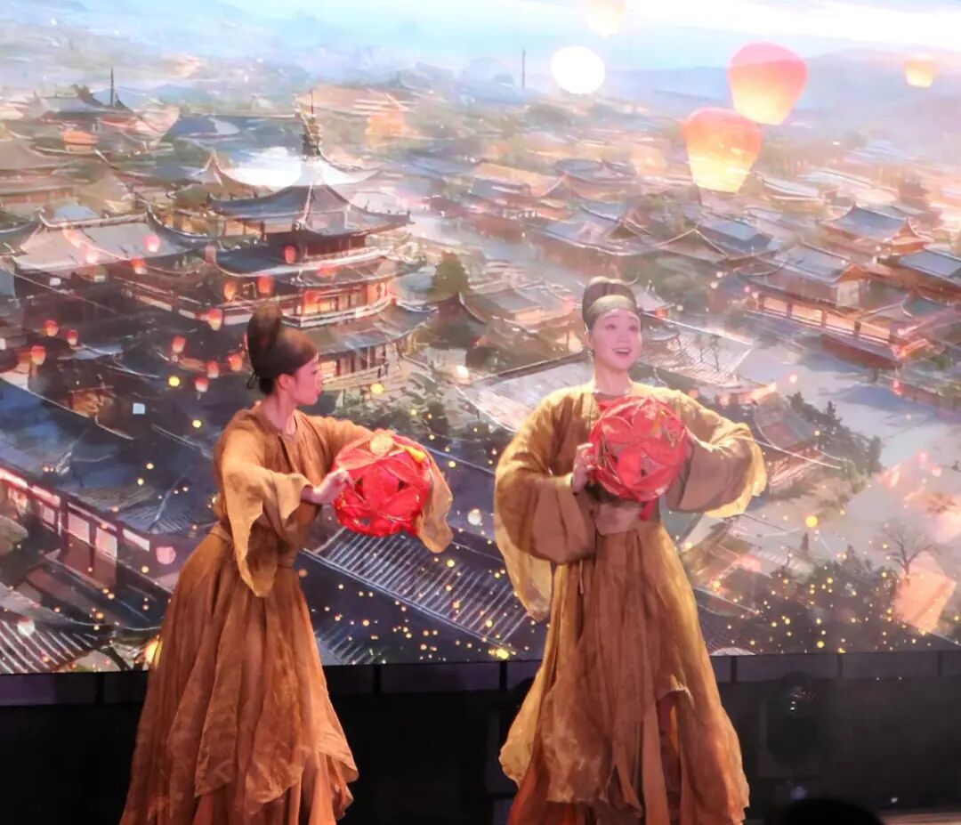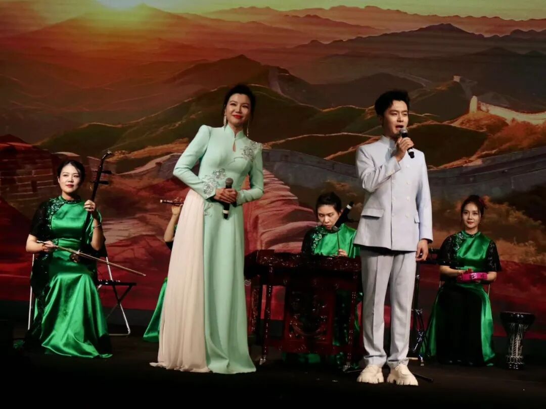 由中國煤礦文工團二級演奏員李鑫領銜演奏的民樂《我家門前有條河》,以細膩的合奏撥動了全場的心弦。李鑫將這首作品比作每個中國人心中靜靜淌過的童年印記,認為它承載的不僅是地理上的流水,更是“上善若水”的民族智慧,“今天我用非遺板胡奏響它,就是想帶著僑胞們回‘家’看看”。青年男高音趙越深情演唱了《多情的土地》。他感嘆道,望著臺下的僑胞面孔,心中倍感親切。對他而言,《多情的土地》唱的是對故土魂牽夢繞的依戀,“雖然我們遠隔山海,但這種心心相印的情誼是斷不了的,希望通過歌聲祝福僑胞們的未來之路更加寬廣。舞蹈演員譚佳迪與齊婧妍演繹的《陶姝俑》展現了“文物活化”的美感。該節目以“唐代男裝女俑”為原型,將“俑”的形象賦予人的生命力和豐富多彩的生活。齊婧妍表示,可以用藝術和文化的魅力拉近海內外中華兒女的情感距離,深感榮幸。