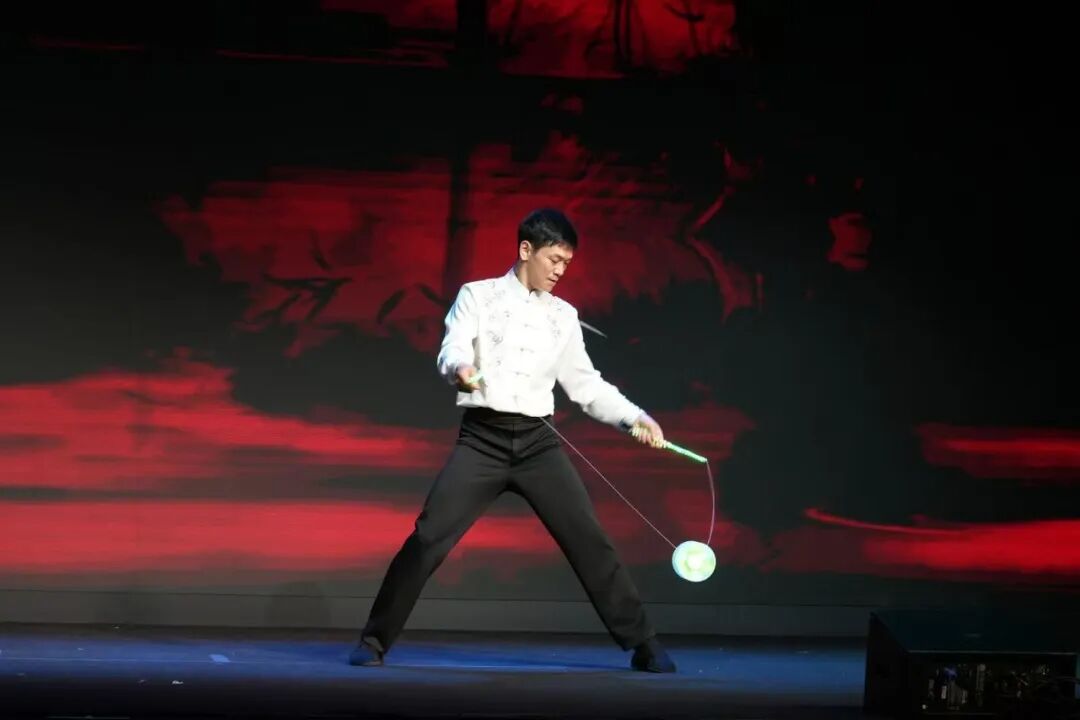 大幕徐啟,民樂合奏《我的祖國》瞬間將全場觀眾帶回了魂牽夢繞的故土。首個篇章以“尋根”為主題,通過抖空竹、板胡、京劇等多項非物質文化遺產的精妙呈現,生動講述中華優秀傳統文化的傳承發展。當京劇表演藝術家、梅派男旦傳人胡文閣驚艷登場,一曲《梨花頌》盡顯國粹神韻。臺下的資深票友王先生動情表示:“這婉轉的唱腔不僅是地道的年味,更是流淌在血脈里的文化基因?!?/span>