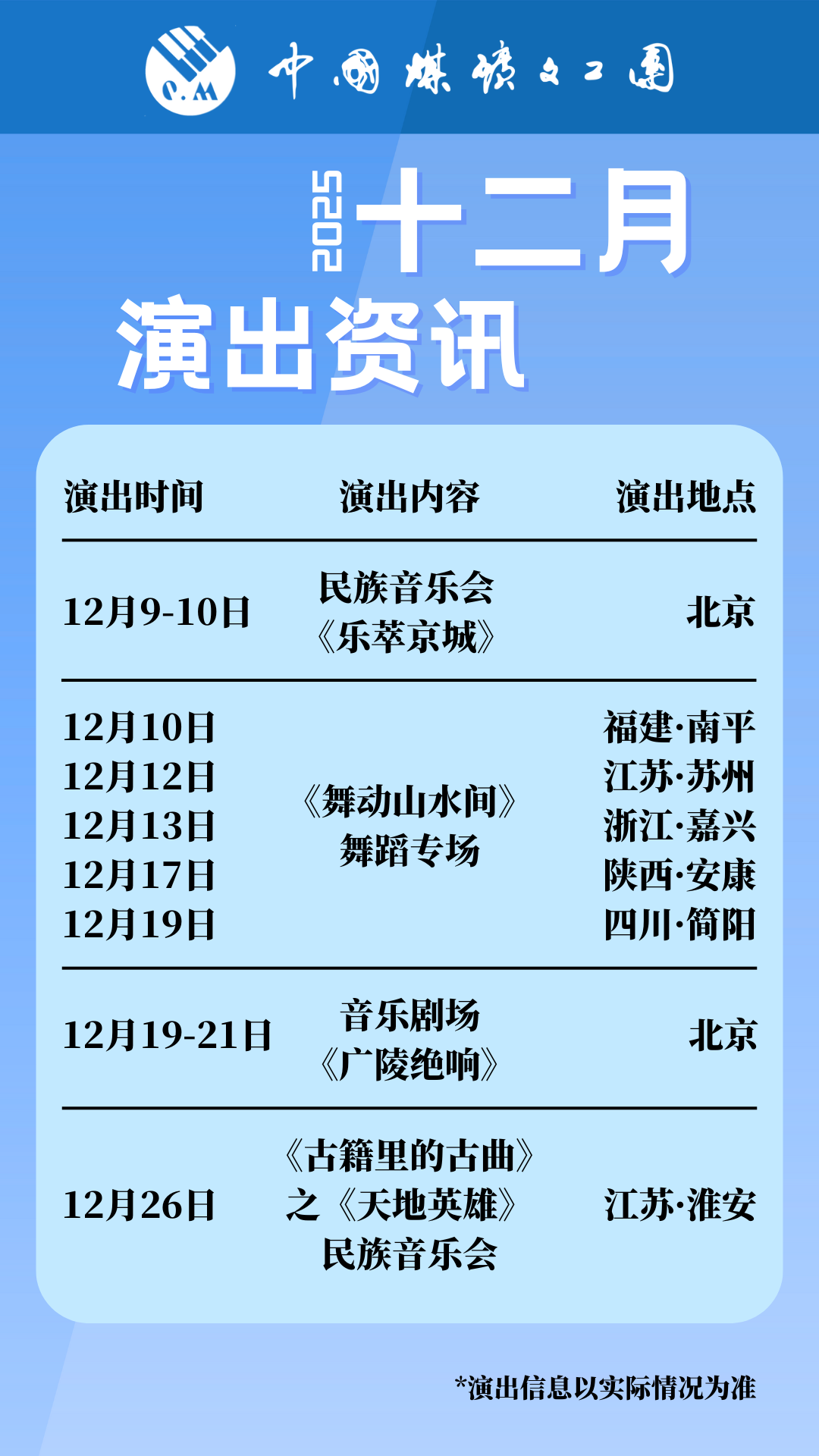 十二月演出資訊